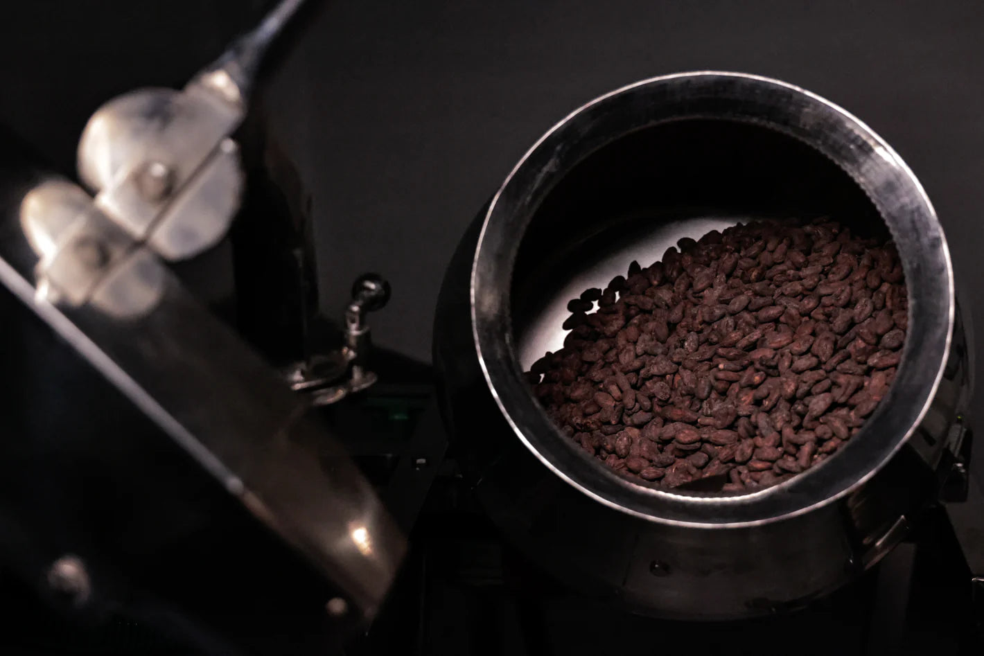 Each batch of cacao beans is roasted to develop their natural flavours. A good roast profile is essential for chocolate to attain its best flavour.